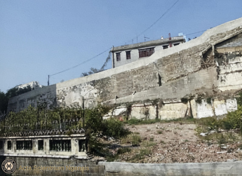 這一段澳門古城牆,本應是現存所有澳門古牆遺跡之中最完整及最有反映歷史性的一段,由高而下發展,充滿於澳門歷史名畫之中,這段古牆稱為「加思欄馬路段古城牆」,但因山泥傾瀉導致城牆倒塌約三分之一,遺跡損失嚴重。圍牆後的土地,已經興建為大型建築物,現時若要懷緬澳門古城的真貌,只能靠照片回憶。已無法恢復本來面貌。卻是十分使人遺憾與可惜。(圖片來源: 延陵科學綜合室檔案室)