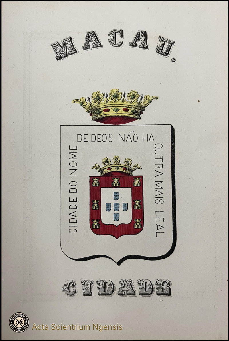 澳門城 (Cidade do Nome de Deus de Macau) ∼1557葡萄牙帝國在中國帝國內的領地,其城市紋章徽號為葡國王室的銀盾徽章。圖片來源: 延陵科學綜合室藏