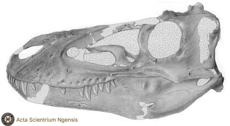 頜骨-牙齒之間有一系列三角形骨板,這些骨板似乎是齒槽壁向上延伸的部分,齒槽壁底部與齒骨邊緣分離。