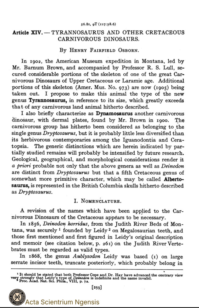 Tyrannosaurus and other Dinosaurs. Albertosaurus sarcophagus gen. et sp. nov.