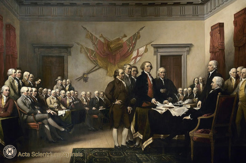 五人小組上呈大會其結果(常誤解為獨立宣言簽署群像)約翰·杜倫巴爾之名畫。 圖片來源: 延陵科學綜合室檔案室 美國獨立戰爭起因於北美十三殖民地與英國之間因經濟和政治緊張不斷加劇的矛盾,尤其是在1763年七年戰爭結束後。英國戰勝法國取得北美領土,但通過徵收如《印花法令》《湯森法令》等新稅,試圖將戰爭開支轉嫁給殖民地居民,引發殖民地強烈反抗,因殖民地無代表權參與英國議會,更加劇了不滿情緒。殖民地要求更大自治權,最後在1775年4月19日列克星敦與康科德的開戰衝突中爆發全面戰爭。經過大陸會議召開,1776年7月2日宣布獨立,7月4日通過《獨立宣言》,正式宣布脫離英國,進入獨立戰爭階段。華盛頓領導的大陸軍最初處境艱難,包括兵力、彈藥不足,經過波士頓圍城戰取得首勝,雖然後續在紐約長島等戰役屢敗,但隨著法國、後續西班牙和荷蘭加入反英聯盟,形勢逆轉。關鍵的薩拉托加戰役中,美軍包圍英軍逼其投降,成為轉捩點。1781年,英軍在約克城被美法聯軍包圍並迫降,隨後戰爭趨於結束。1783年,交戰各方在巴黎簽署和平條約,英國正式承認美國獨立,完成了從殖民地到獨立國家的轉變。整場革命彰顯出北美民族追求自治、民主和反抗強權的精神,奠定美國成為獨立大國的基礎。 戰爭與軍械委員會紋章 (Seal of the Board of War and Ordnance)