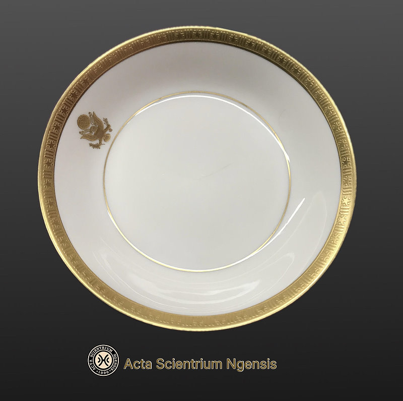 Porcelain for the President of the United States Presidential China Fromthe Early 20th Century -- A small disk Pieces Made for Air Force Oneon the Presidential Train。總統專用瓷器20世紀初-為總統專機「空軍一號」製作的小型圓盤瓷器。圖片來源: 延陵科學綜合室藏 正文部分