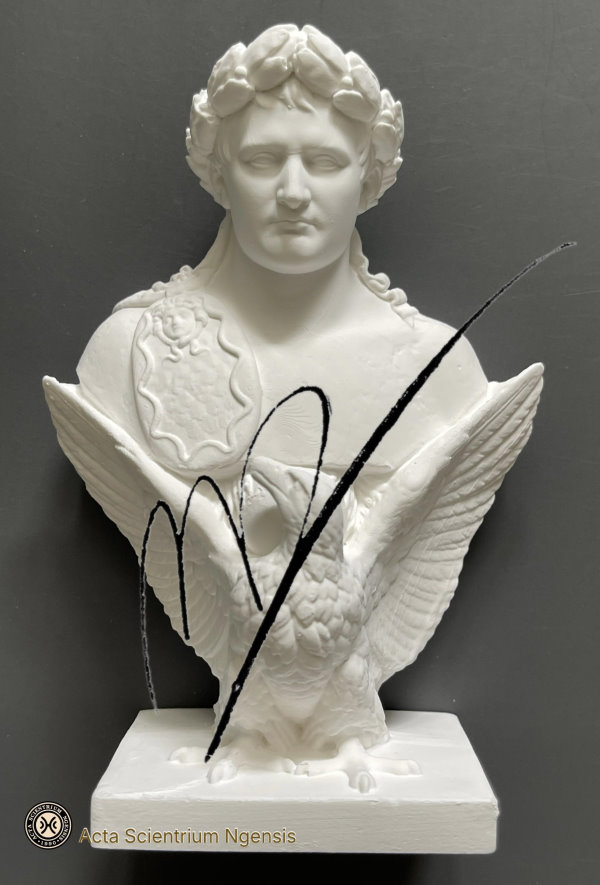 上圖: 專題封面的拿破崙手簽式樣與石小型膏像。下圖:拿破崙·波拿巴