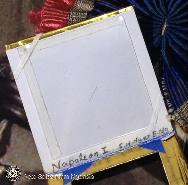 拿破崙的頭髮在他去世後被剪下並保存,成為歷史研究者珍視的遺物。 圖片來源: 延陵科學綜合室藏