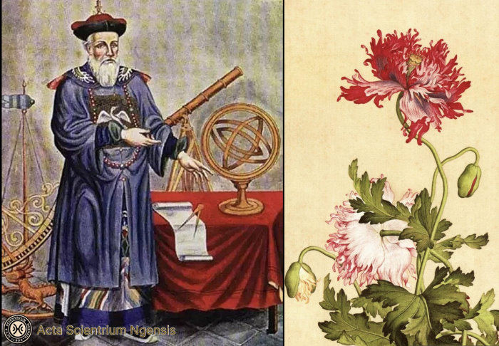 Castiglione )與他創作的花卉圖。(圖片來源: 延陵科學綜合室檔案室)