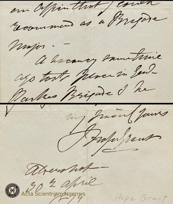 詹姆士·霍普·格蘭特爵士1874年4月30日的信函剪片
