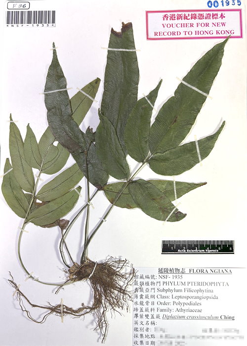 ¬ö»´ä¤@¿¹Ãþ´Óª«·s¬ö¿ý: «p¸Âù»\¿¹ Diplazium crassiusculum Ching ©º¶³ ¤Î ¿¬óç, 2026 ¦~ 1 ¤ë 1 ¤é ¡@