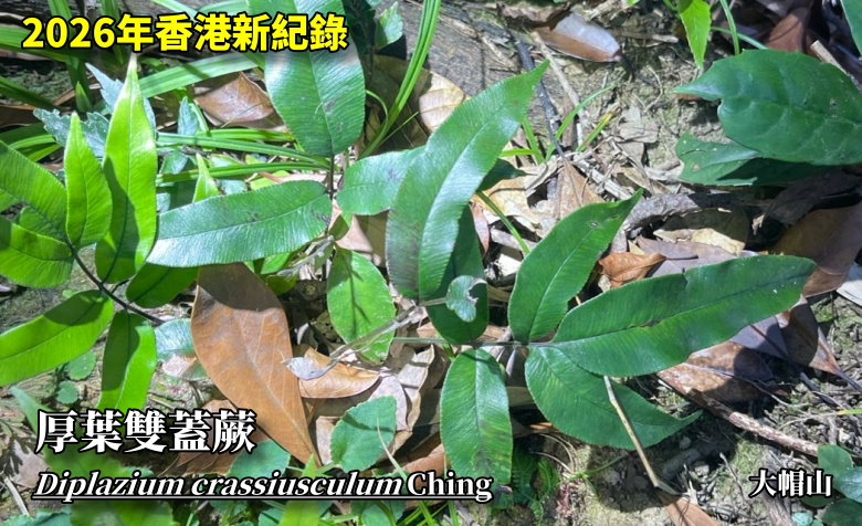 2025 ¦~¤U¦¯©µ³®®æª«¬ã¨s²Õ³Ìªñ¦b¤j´U¤s¶i¦æ¥Íª«¦h¼Ë©Ê¬ã¨s®Éµo²{ªº«p¸Âù»\¿¹ Diplazium crassiusculum Ching ¬°»´äªº·s¬ö¿ý, ¦Û«á¥i¥H»{¬°»´ä¤vª¾ì¥ÍÂù»\¿¹ÄÝ ( Diplazium )´Óª«¼W¦Ü 6Ó«~ºØ¡C