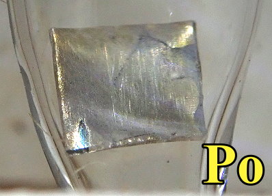 保存了18年(2003-2021)後因嬗變引起金屬晶格破壞而呈現啞暗, 以半衰期 t 1/2 = 125.2年計算, 公元2003年時純度為97%,