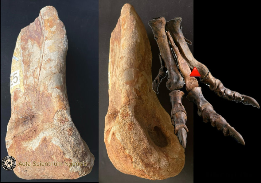 延陵科學綜合室研究的暴龍類樣本,包括:侏儒暴龍牙齒化石、頭骨上顎翼骨、右足中蹠骨標本。圖片來源:
