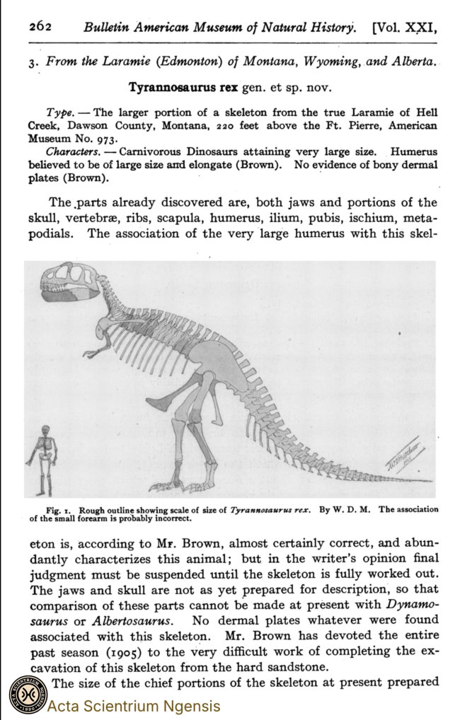 暴龍 (Tyrannosaurus rex) 自1905年由古生物學家亨利·費爾菲爾德·奧斯本