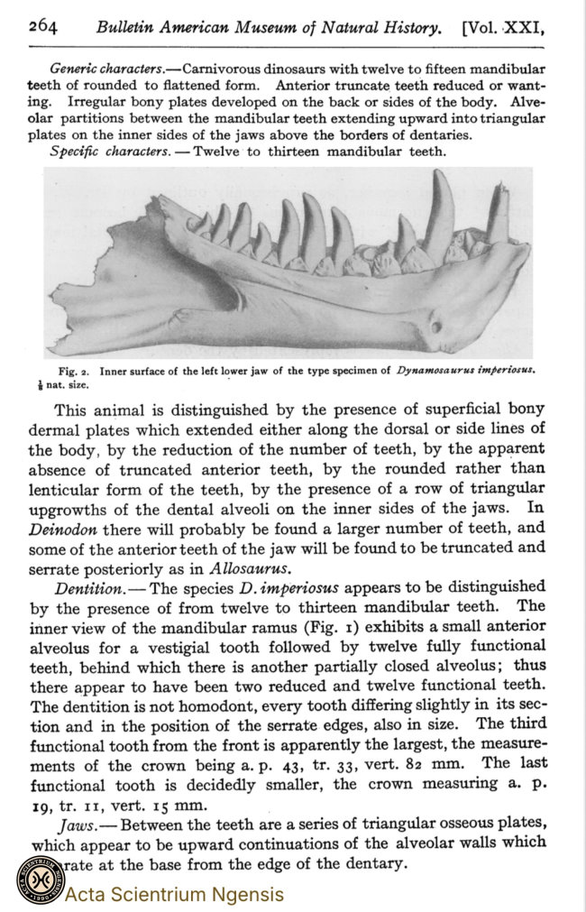 and Deinodon. Lambe determines fifteen mandibular teeth, fourteen of full size,