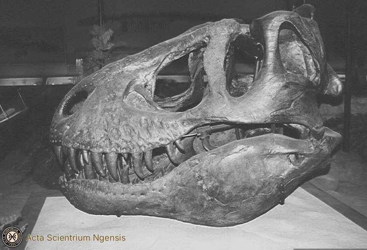 卡內基博物館內暴龍正模標本CM 9380的舊照片,可以清楚地看到復原的頭骨部件。圖片來源: 延陵科學綜合室檔案室