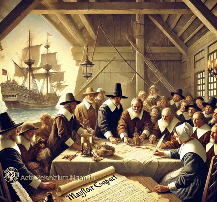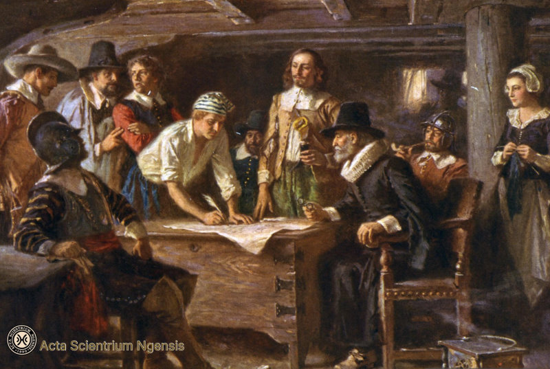 《五月花號公約》的幾項關鍵內容,簽署者代表整個殖民地人民,自願團結為一個政治體,實行自治管理。 政府的合法性來自被管理者的同意,體現了社會契約原則。