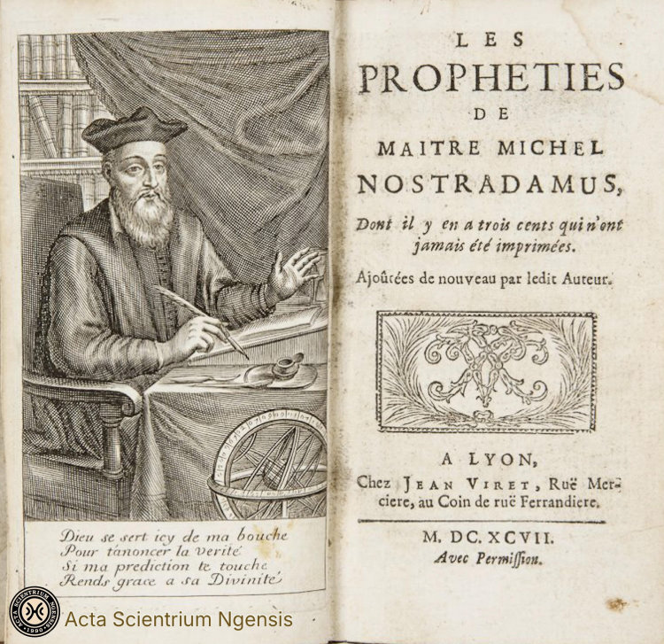 Propheties》的中文被譯作《諸世紀》1697,法國預言家米歇爾·諾查丹瑪斯大師 (Michel de Nostredame) 著。圖片來源: