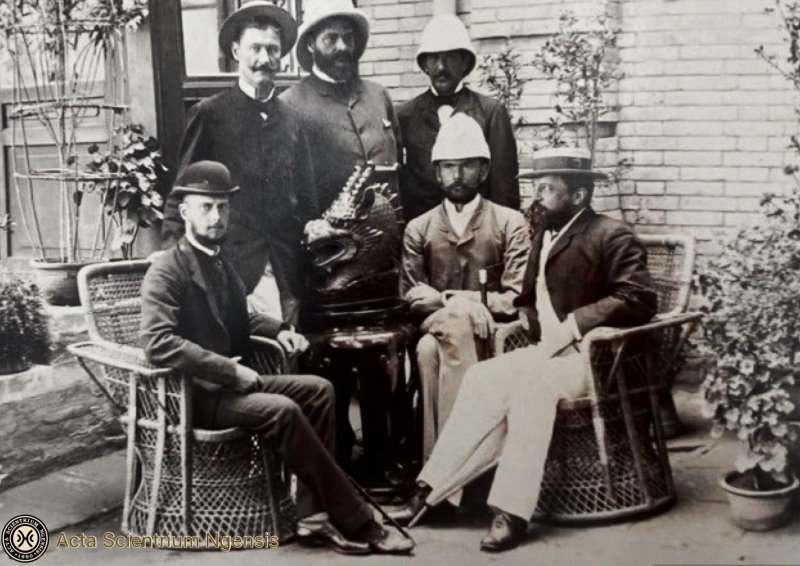 1880-1884年擔任法國駐大清國公署署使的謝滿祿(Robert de Semallé)左二,回法國前和好友們與龍首合影。(片攝於1884年6月)。(圖片來源: