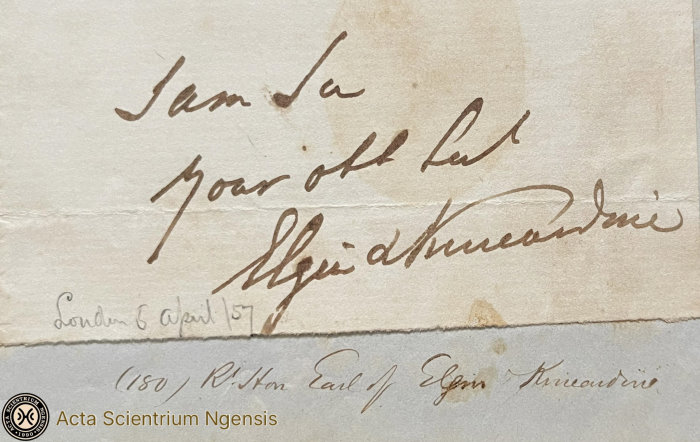 下圖:額爾金伯爵書信剪片。 (圖片來源: 延陵科學綜合室檔案室)