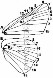 弄蝶科的翅脈相: